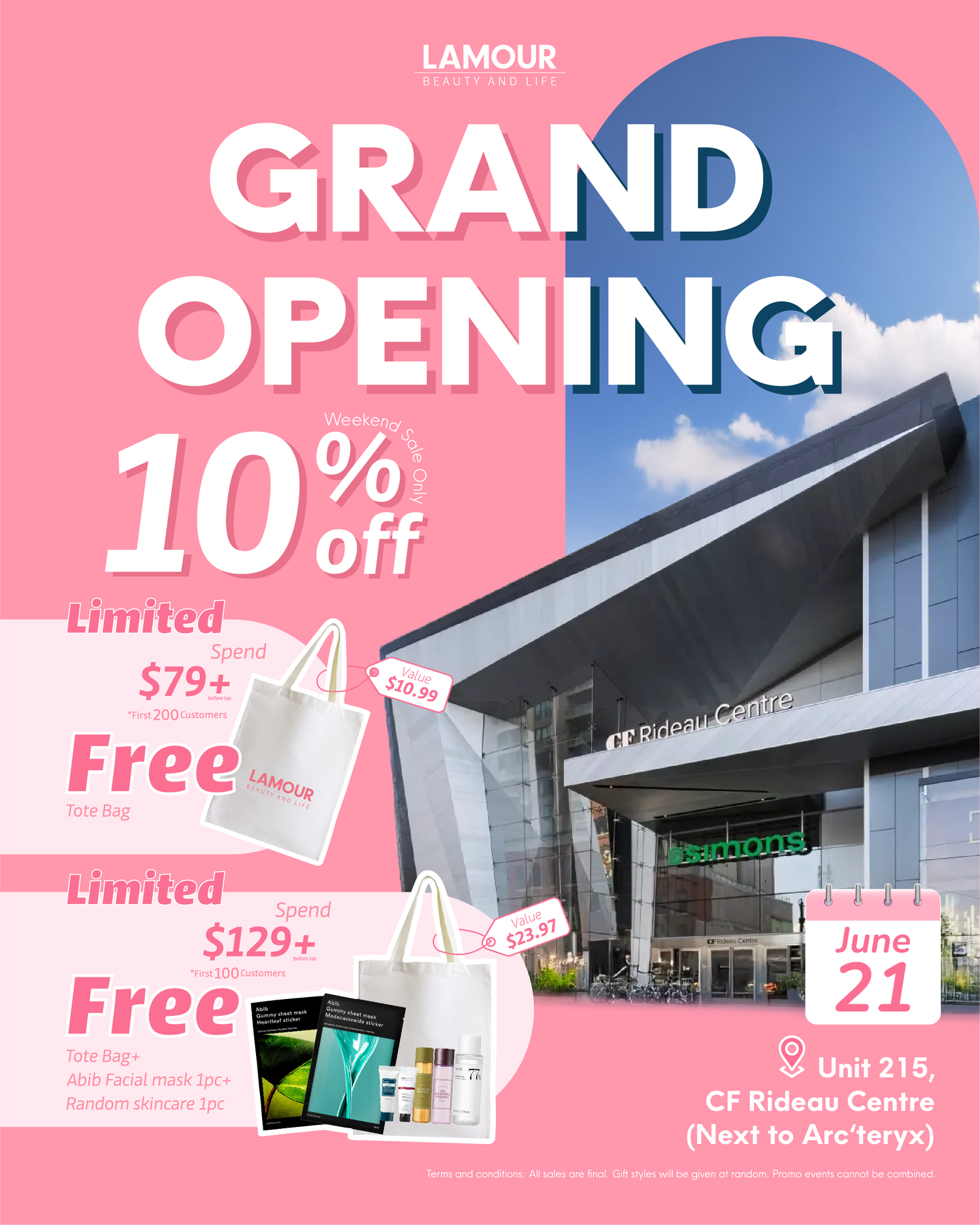 Explore Asian skincare, cosmetics & lifestyle essentials at our new CF Rideau Centre store in Ottawa DT! Discover K-beauty & more. Grand opening now!