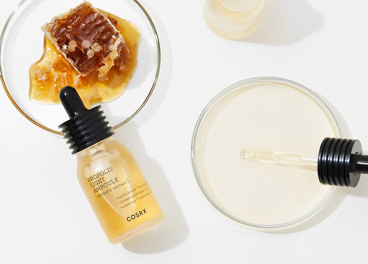 Propolis is a common ingredient used in the K-beauty industry, it has many benefits and is efficient with anti-bacterial and anti-inflammatory properties. It can help to treat acne skin and leave dewy skin by removing dead skin cells.