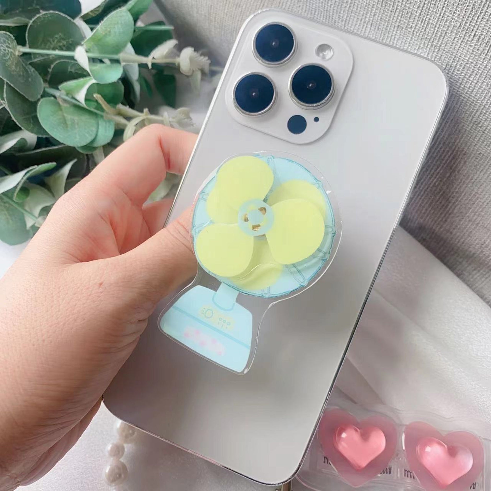 3D Rotating Mini Fan Phone Grip Stand Holder