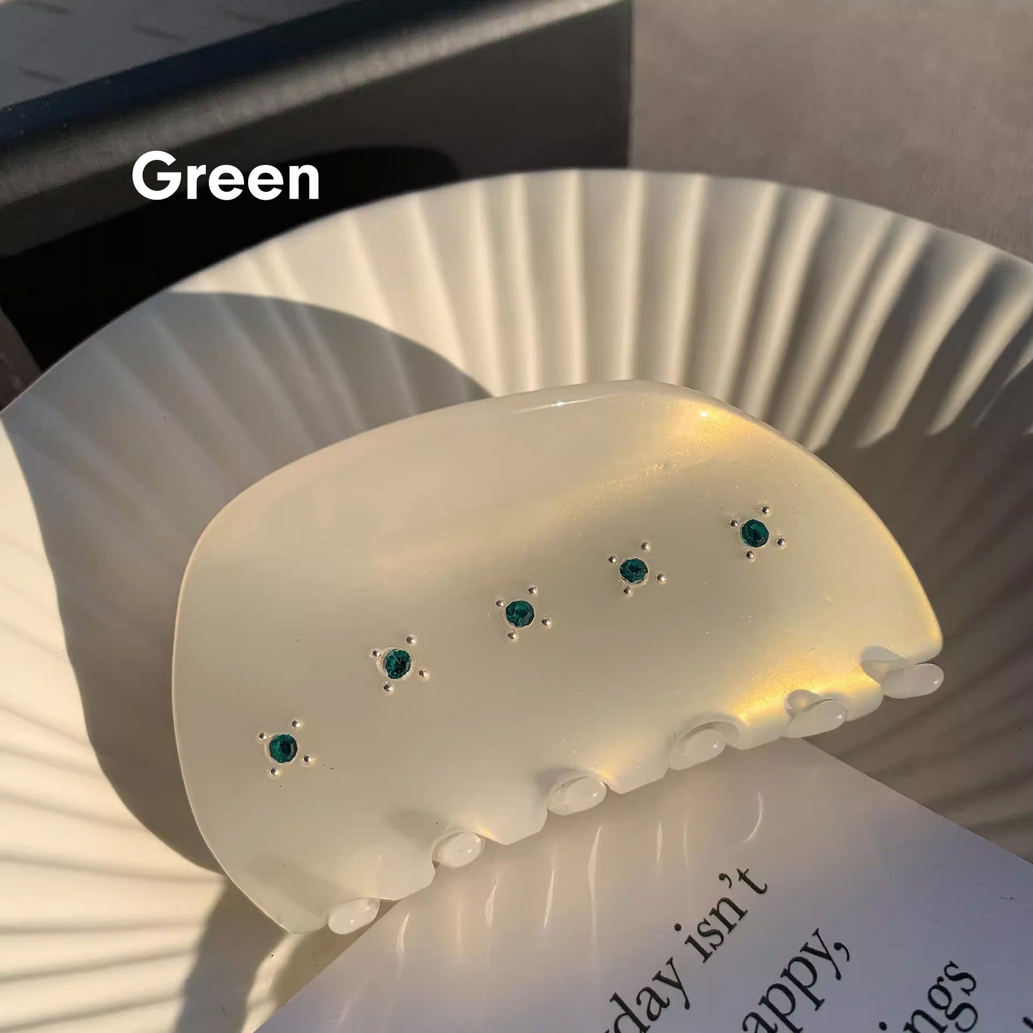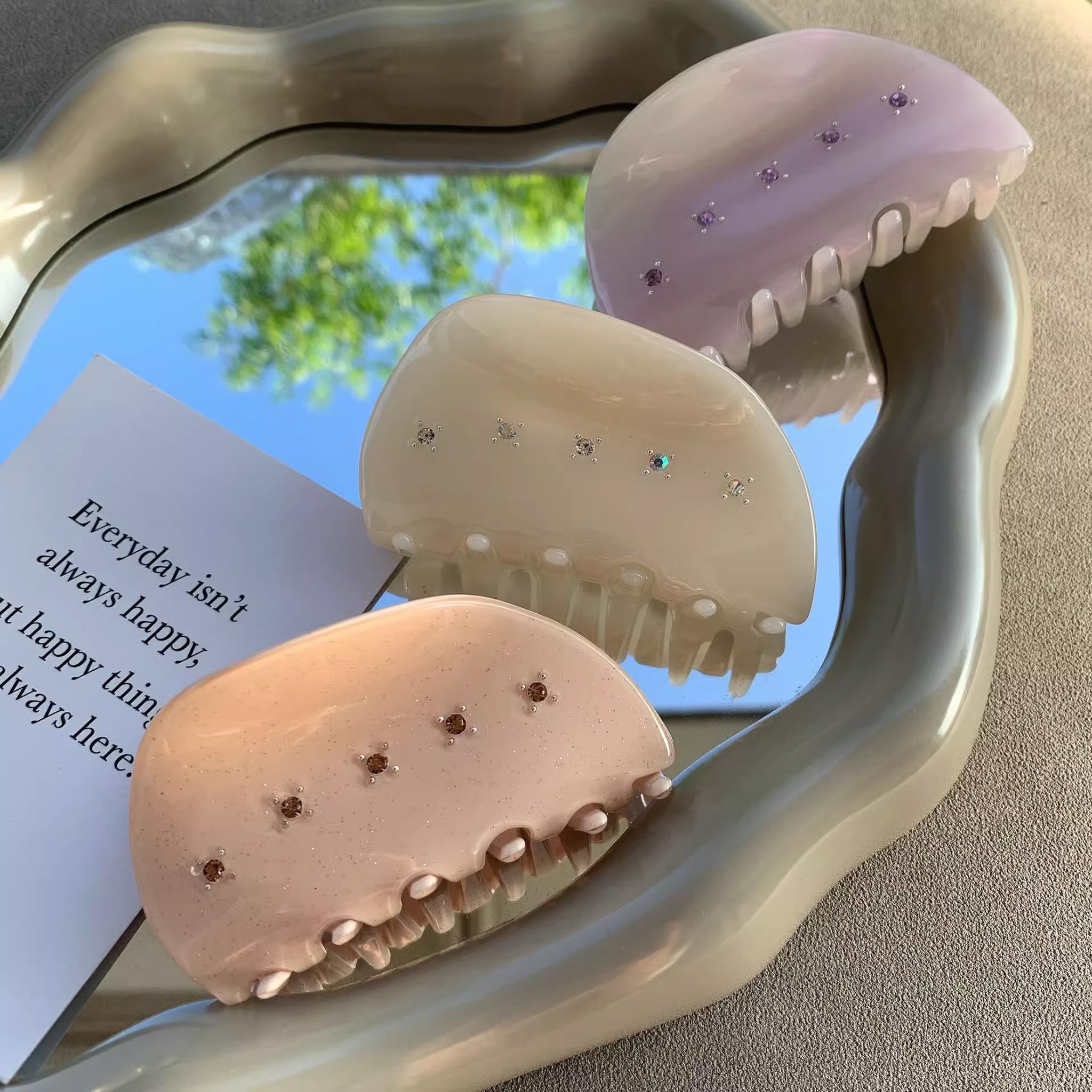 Exquisite hair clips that produce different colors under sunlight, each with a unique design and color.