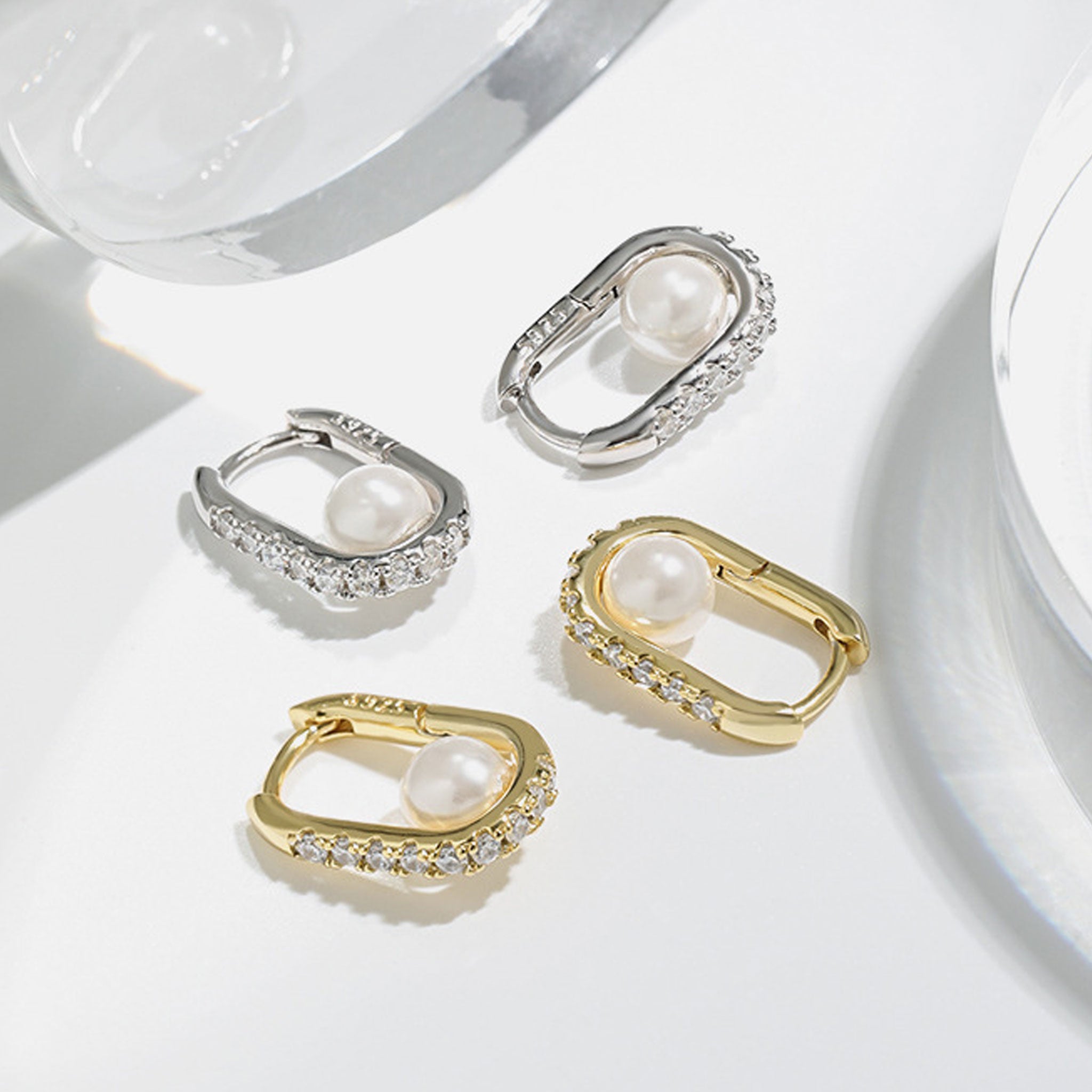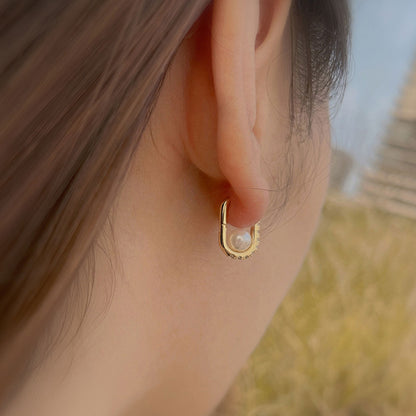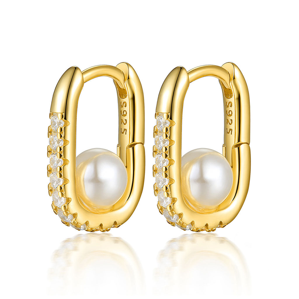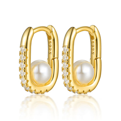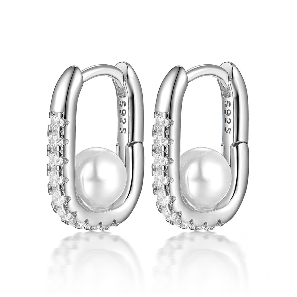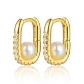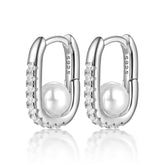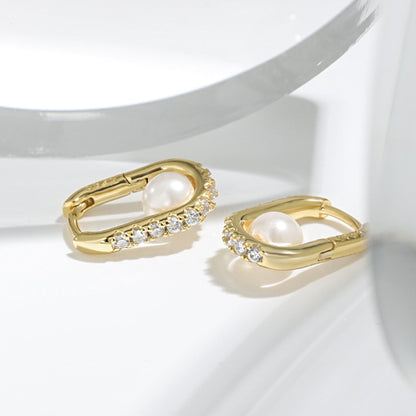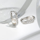 Geometric Oval Zircon Pearl Earrings