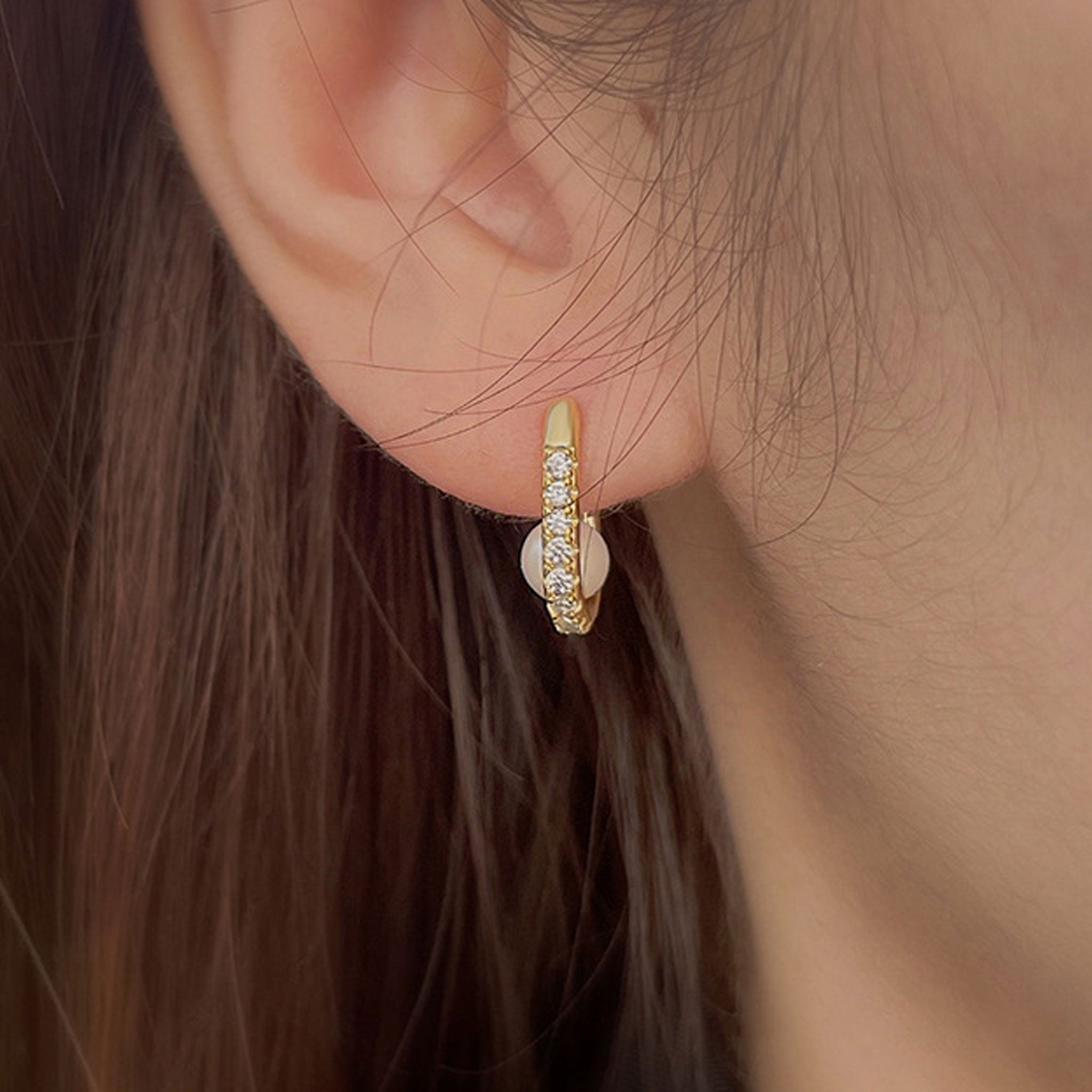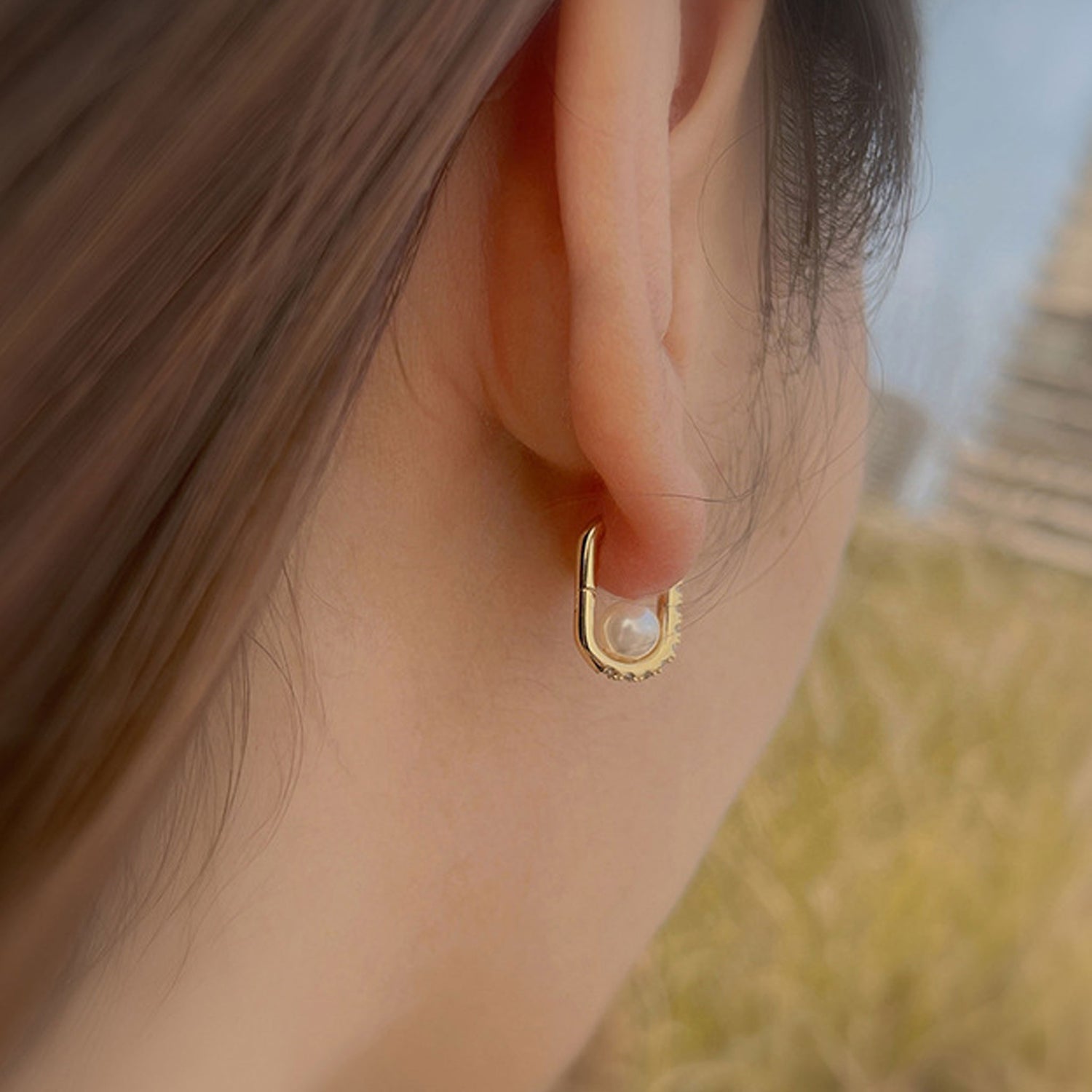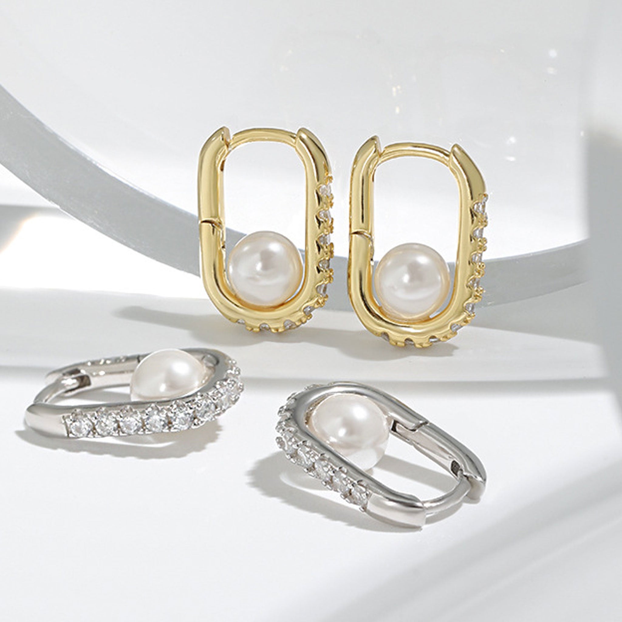 Geometric Oval Zircon Pearl Earrings