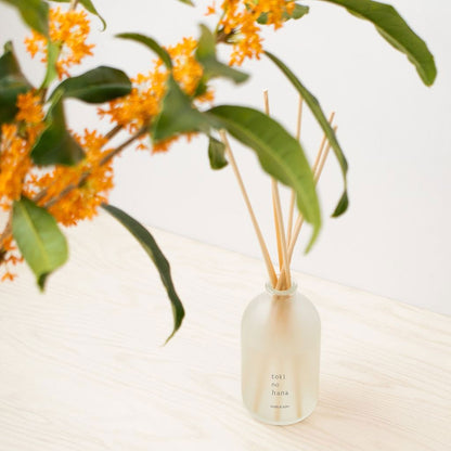 A reed diffuser that allows you to enjoy the changing seasons with the scent of flowers. Like a single flower in a vase, the fragrance subtly adds a touch of color to your daily life, infusing your environment with the delicate and ever-changing aromas of blooms.