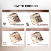This palette includes four shades that work together to create a sculpted contour and radiant glow. The matte textures are silky and soft like cotton, minimizing fallout. The shimmering highlighters enhance specific areas with a luminous sheen that reflects light beautifully from various angles.
