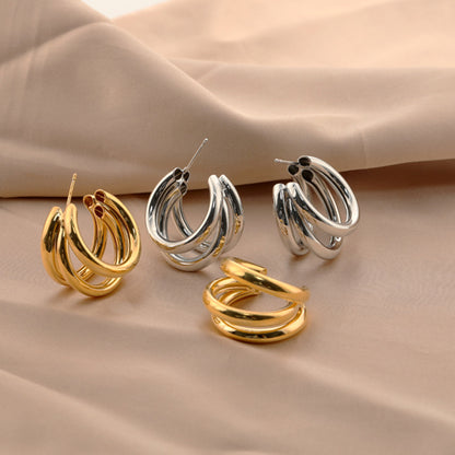 Multi-Layered Circular Gold Earrings