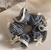 It combines the practicality of a hair elastic with the charm of a stylish plaid bow. This trendy accessory is perfect for adding a touch of vintage or preppy flair to any hairstyle. Whether you're tying your hair in a ponytail, bun, or braids, this hair tie will keep your hair in place while adding a fun, fashionable accent.