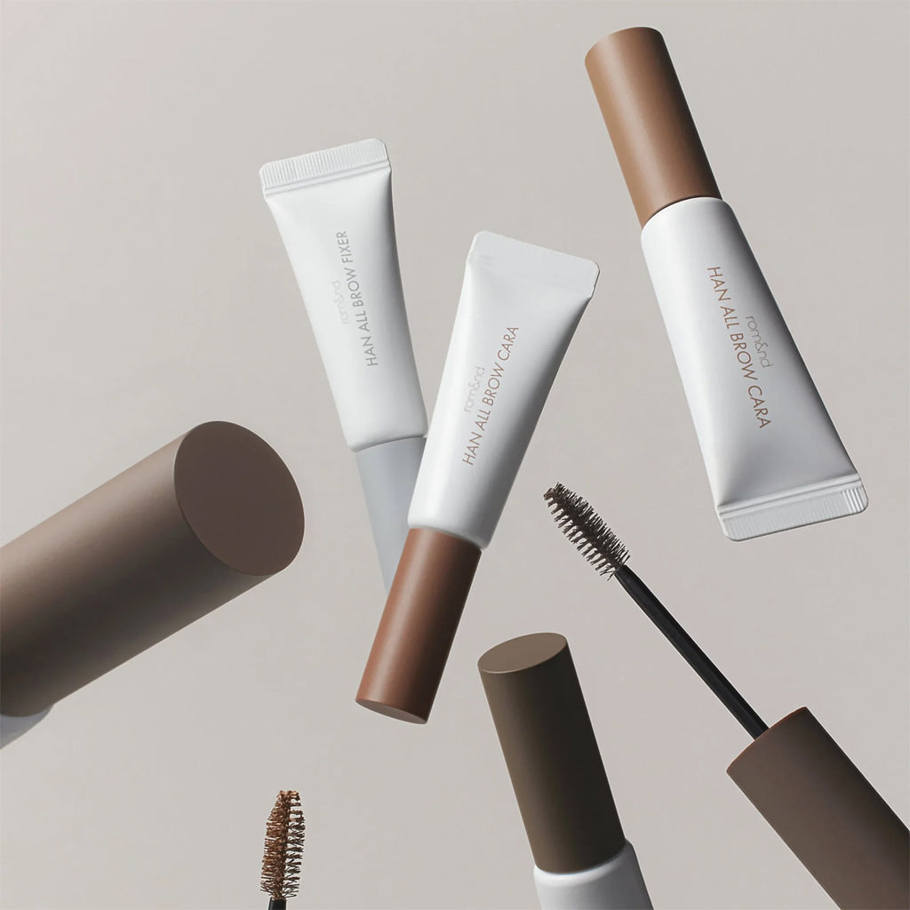 2.Take the applicator and gently brush the ROMAND Han All Brow Cara through your brows, starting from the inner corner and working outward.