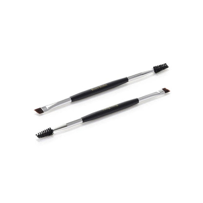 This double eyebrow brush features a screw type and soft fibers to gently regulate hair flow and naturally blur eyebrows. The diagonal flat brush, made with densely packed elastic ultra-fine fibers, allows for delicate expression. It's perfect for applying color evenly, adding individual hair strokes, and finishing sharp areas like the outer corners of the eyes.