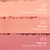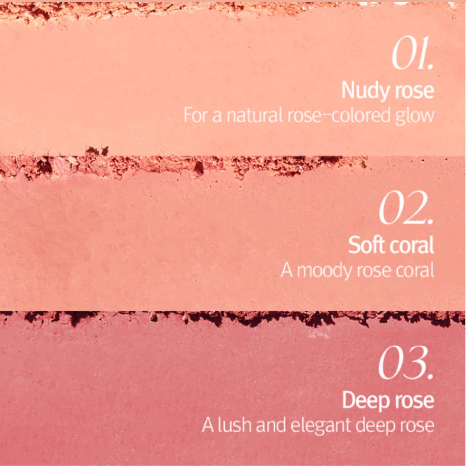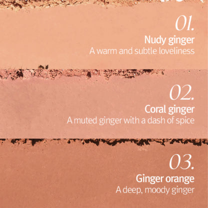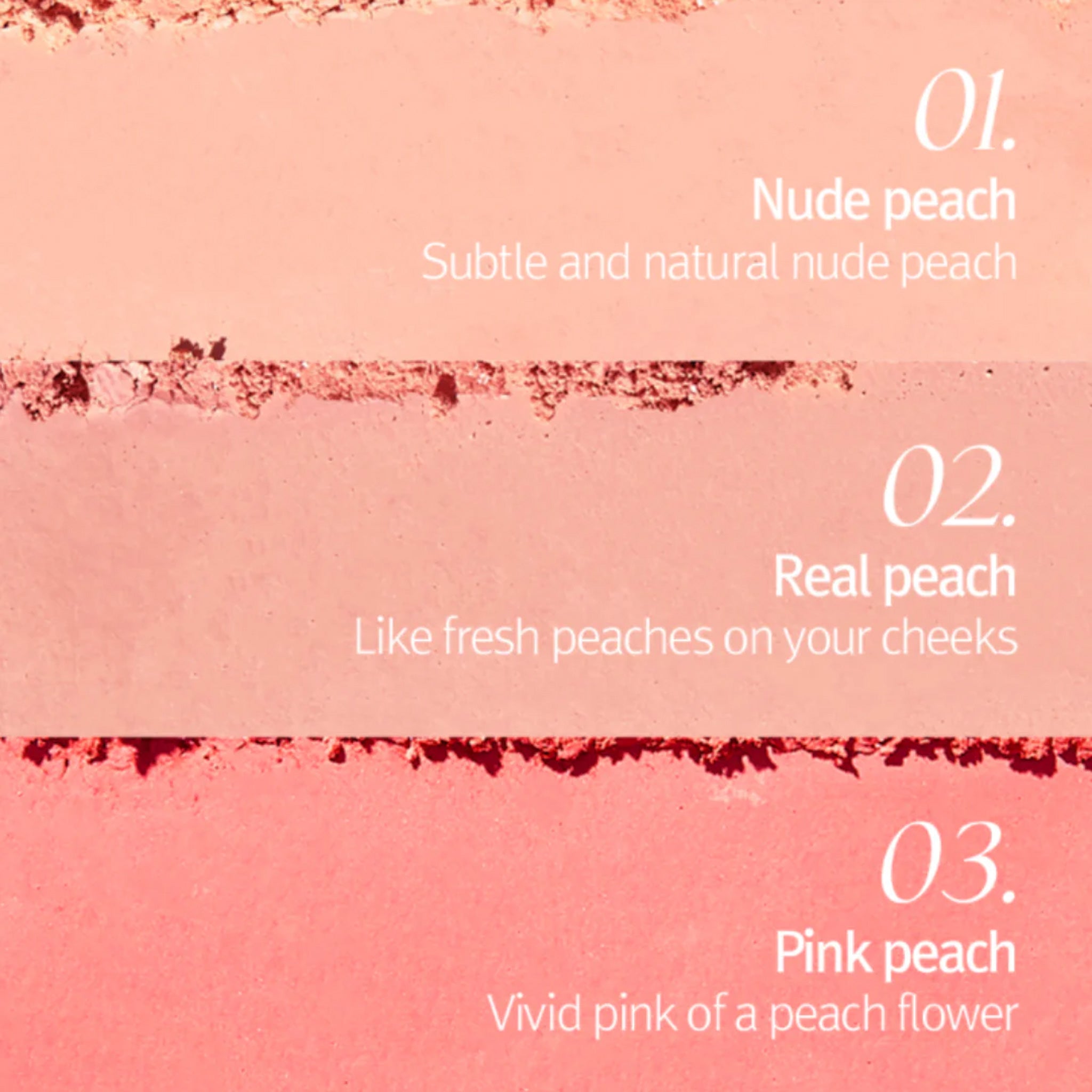 A velvety brusher features with 3 colors that gives you natural, gradated rosy cheeks. Ultra-fine powder with buildable formula provides sheer finish with clear color payoff effortlessly.