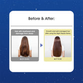 It is a premium nighttime treatment that deeply nourishes and repairs hair while you sleep. Infused with a blend of natural oils and restorative ingredients, this lightweight formula absorbs quickly without leaving a greasy residue. Perfect for dry, damaged, or frizzy hair, it promotes smoother, shinier, and healthier locks by morning.