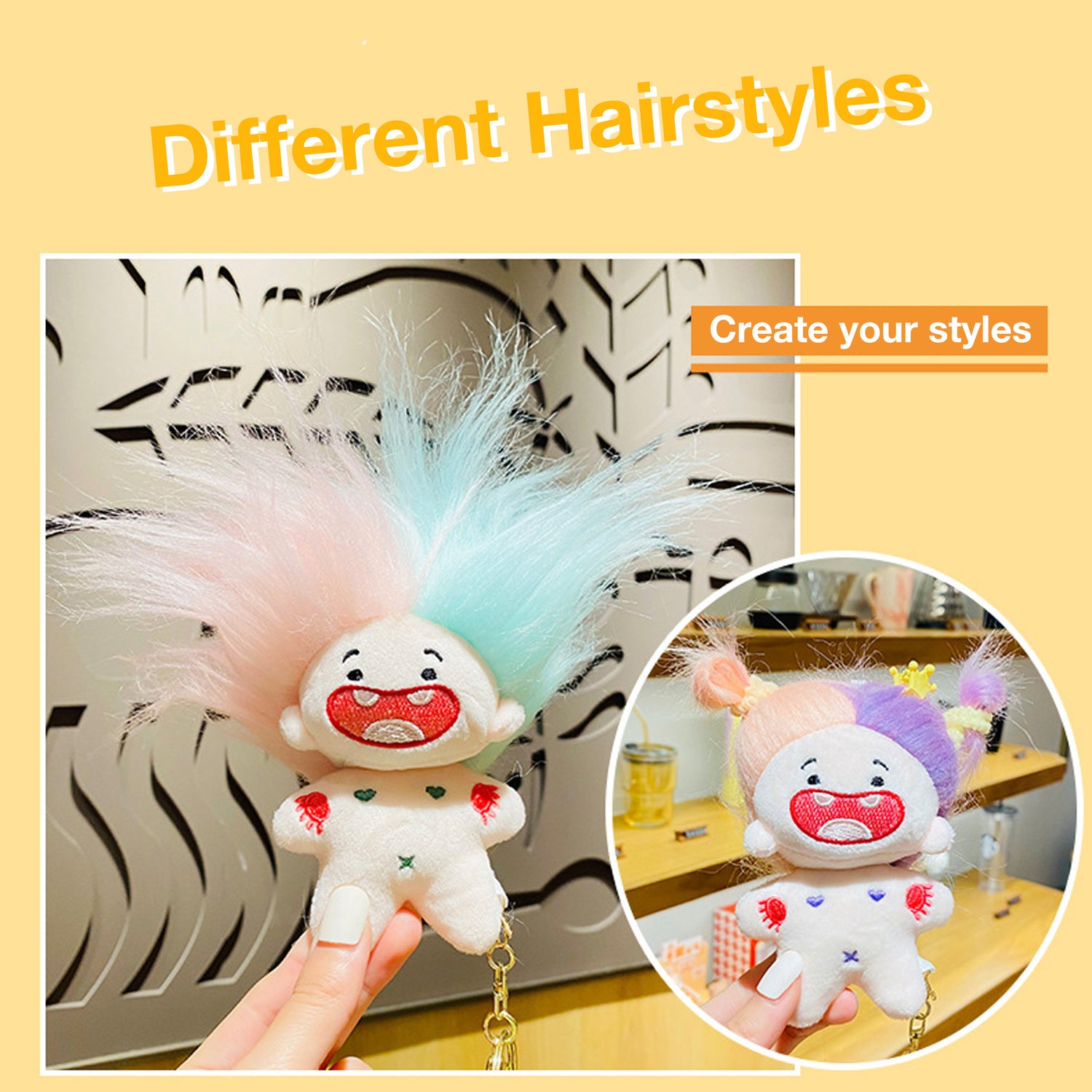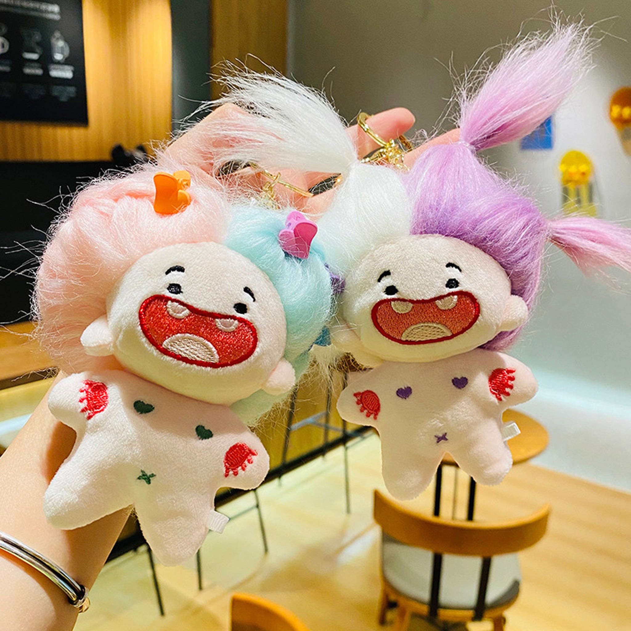 可爱毛绒搞怪炸毛缺牙巴棉花娃娃公仔钥匙扣