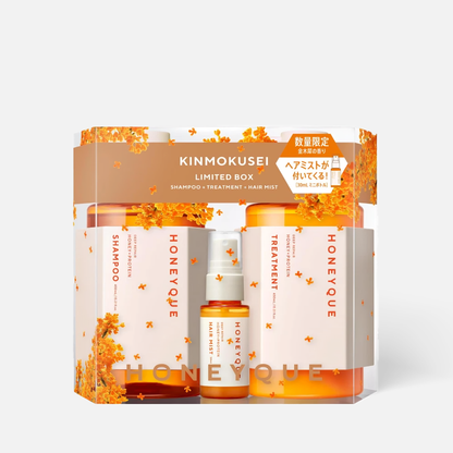 金木犀限定香气上线,呵护干枯毛躁发丝,打造柔顺蜜感秀发。HONEYQUE深层修护系列限定套装,内含洗发水、护发素与双用保湿喷雾,专为受损、易打结发质打造,提升发丝含水量,修护毛鳞片,让秀发从发芯开始焕发光泽与柔顺感。