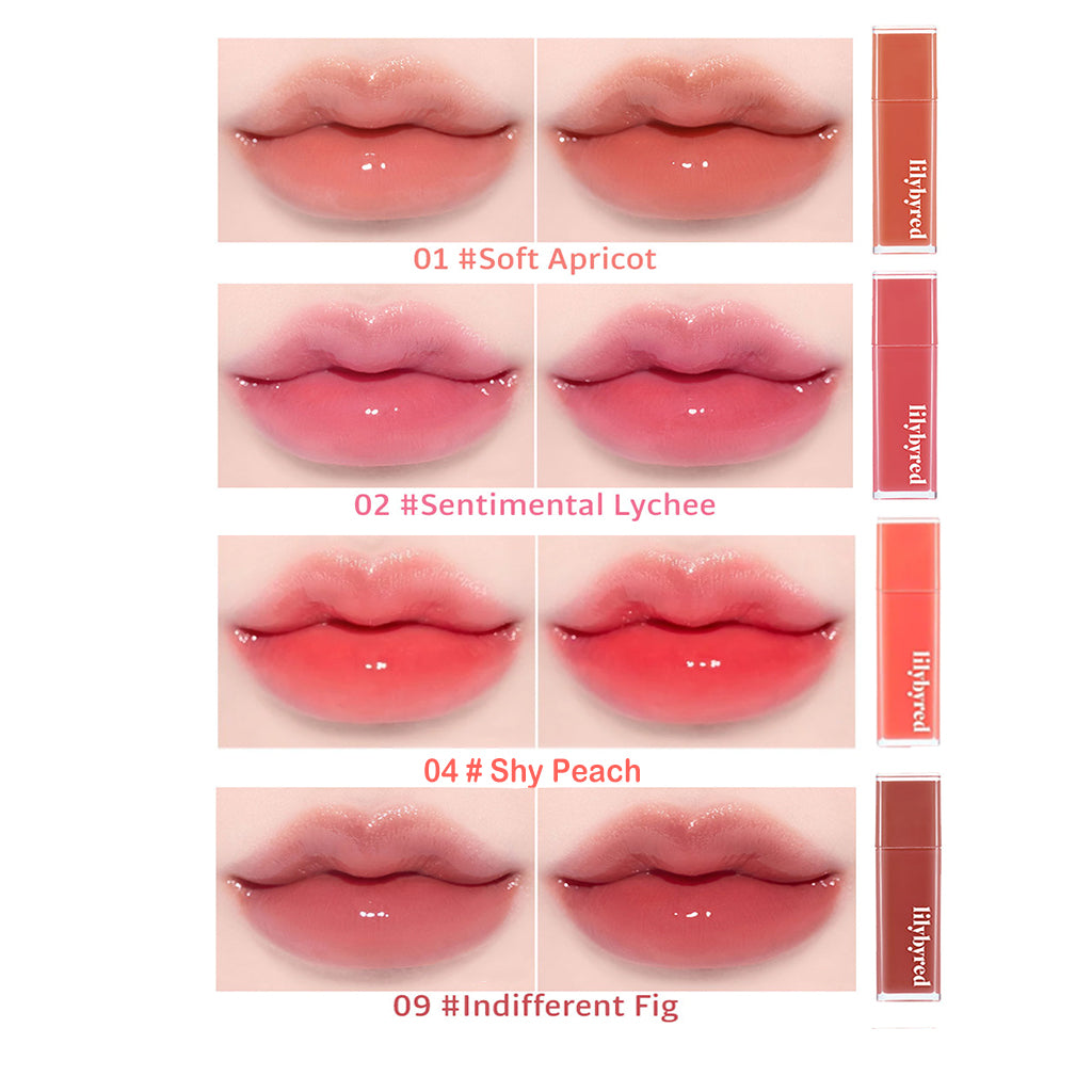 这款产品带来清新果汁般的妆效,初上妆时色泽鲜明,随着时间慢慢转为柔和的冷桃色,呈现出自然透明的美。lillybyred升级款唇釉,精心挑选了最新鲜甜美的水果颜色来打造,确保每一抹都生动又自然,轻松get甜美少女风。