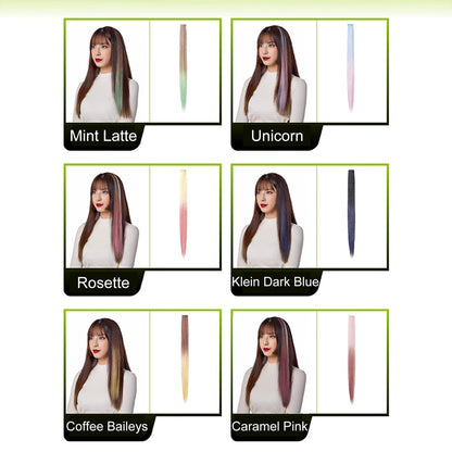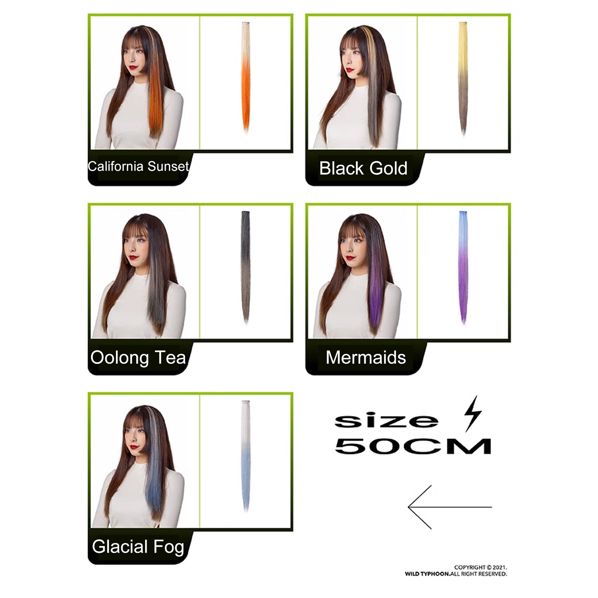 这些带钩的单件式彩色假发提供多种颜色和款式,适合各种场合。