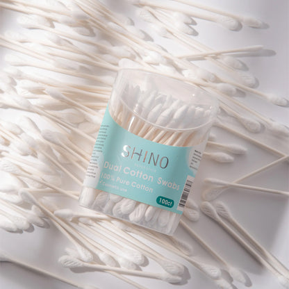 SHINO双用有机棉棒 ,它由 100% 纯棉制成,具有出色的柔软度和吸水性。这些高品质棉签非常适合精细任务,非常适合化妆、补妆和精密清洁。