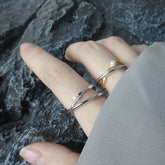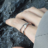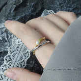 双层篮空珍珠戒指。优雅、现代、简约。这款可调节戒指适合任何服装!